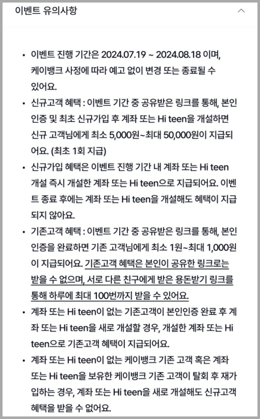 2024년 7월 19일부터 8월 18일까지, 무려 한 달 동안 진행되는 이 이벤트. 하루라도 늦게 참여한다면 그만큼 손해라는 사실! 지금 바로 케이뱅크 앱을 열고 참여하세요.