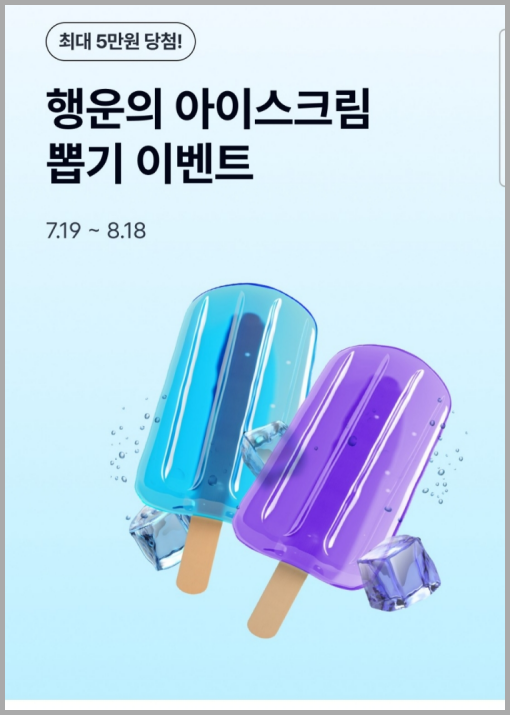 케이뱅크에서 진행하는 행운의 아이스크림 뽑기 이벤트로 매일 최대 5만원의 용돈받기 기회! 신규 회원은 최대 5만원, 기존 회원은 하루 100번까지 참여 가능. 이 시원한 혜택, 놓치지 마세요!