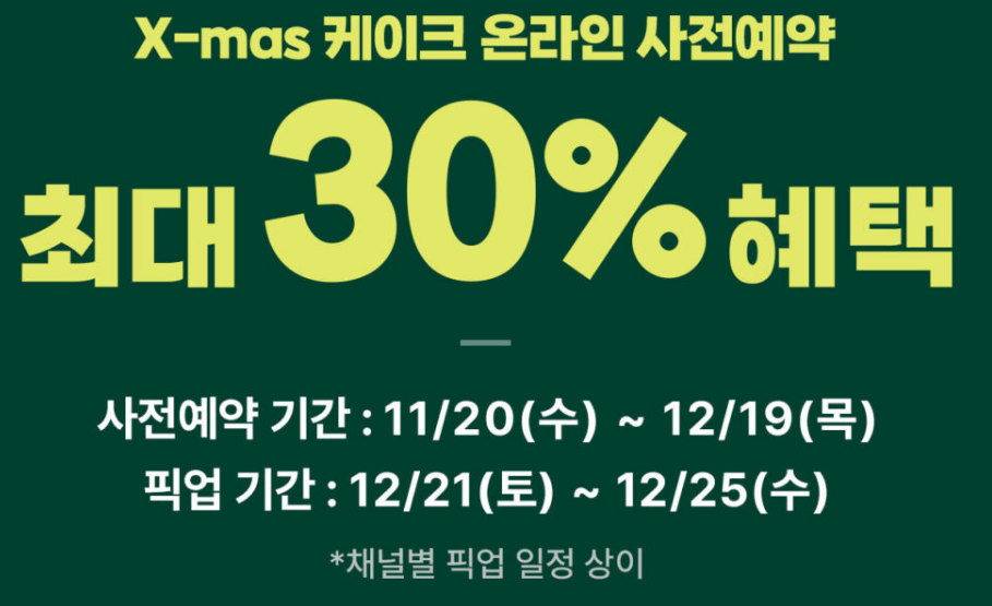 파리바게트 크리스마스 케이크 사전예약을 통해 최대 25% 할인 혜택을 받을 수 있습니다.