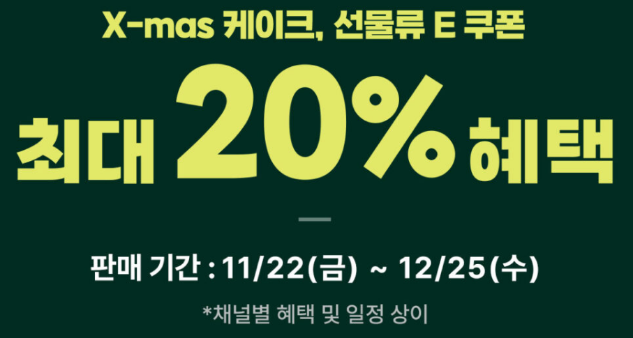 - 땡겨요, 카카오 예약하기, 배달의 민족: 11월 25일(월) ~ 12월 19일(목)
